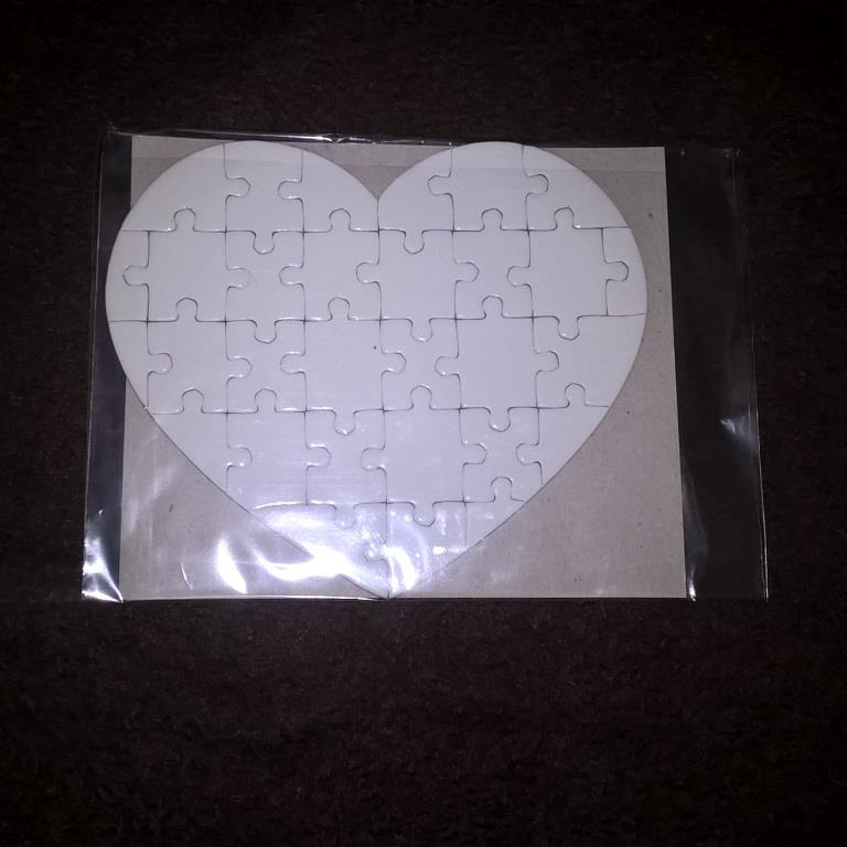 Зібраний пазл на картонній підложці та запакований в прозорий пакет. Характеристики: Розмір - 125х110 мм Кількість елементів - 30 Колір - білий Матеріал - картон Форма - в вигляді серця