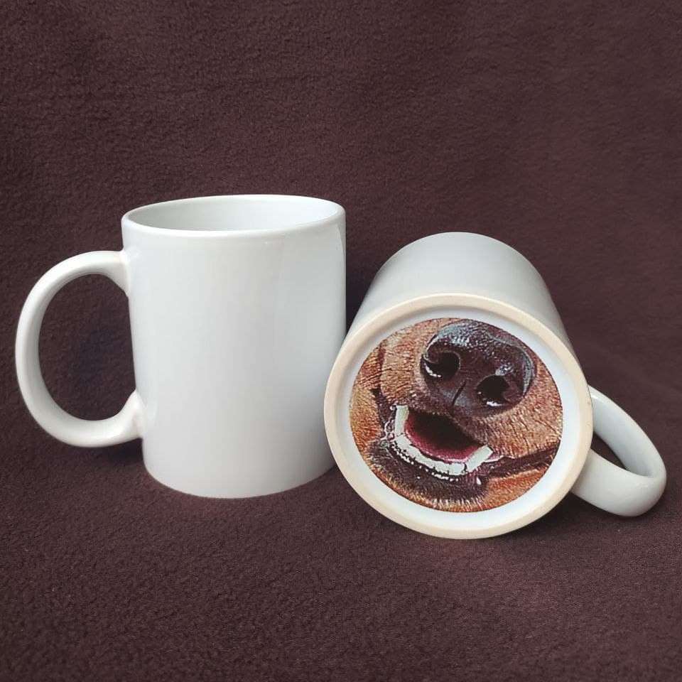 Чашка біла об'ємом 330 мл., з приколом. На дні чашки нанесений мордочко собаки. Розіграй своїх рідних , близьких та друзів. Оригінальний подарунок-прикол.
