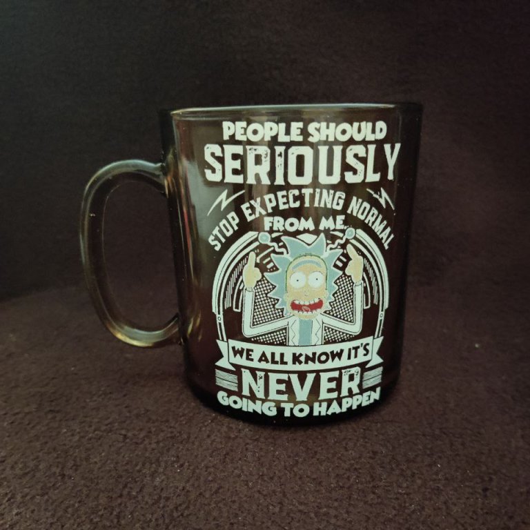Чашка глянцева скляна на 330 мл. з нанесеним принтом термотрансфертною технологією та за допомогою якісного німецького паперу Forever Multi-Trans дозволяє на звичайні глянцеві скляні чашки наносити Ваші принти навіть у білому кольорі. Зображення досить стійке до стирання (наприклад, можна мити гуртки губкою), але його можна механічно пошкодити.